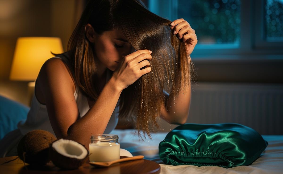 The most effective use is as a pre-shampoo mask. This allows coconut oil to protect the inner structure while preventing daytime greasiness. Work on dry or barely damp hair: dry fibres pull in oil more evenly, while a light mist of water can help if your hair tangles easily. Concentrate on the thirstiest zones—typically the last 10–15 cm of length—and keep the scalp mostly clear if you’re prone to oiliness or flakes. A silk bonnet or old T-shirt turban limits friction and keeps bedding clean.
