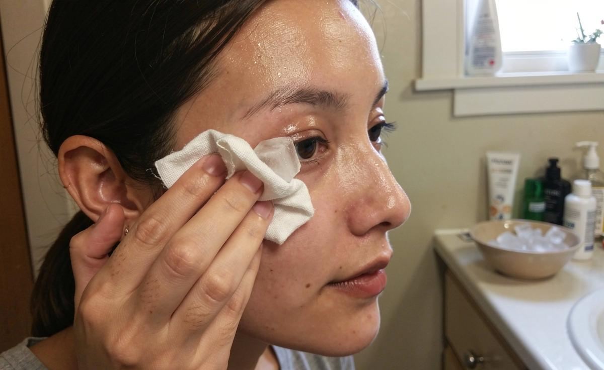- Prep (1 min): Cleanse. Wrap one cube in the cloth; this barrier prevents cold burns and improves glide.